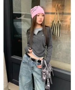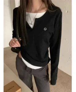 2024 Autumn Winter Long Sleeves Korean Fashion Style O-neck Tshirt For Women