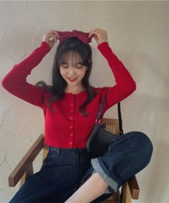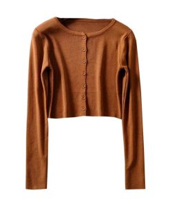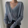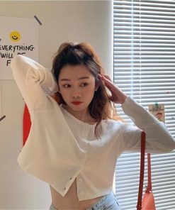 Korean Style O-neck Short Knitted Sweaters Women Thin Cardigan Fashion Sleeve Sun Protection Crop Top