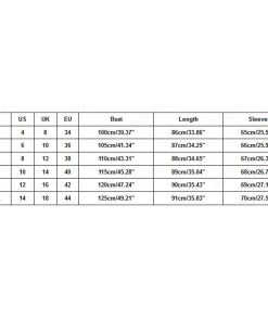 | Size | US | UK | EU | Bust | Length | Sleeve |